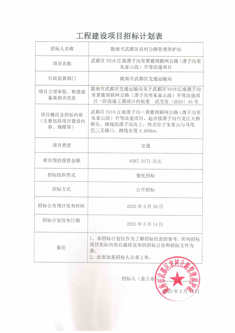 武都區(qū)Y018江南渭子溝至黃鹿壩聯(lián)網(wǎng)公路(渭子溝至朱家山段)升等改造項目