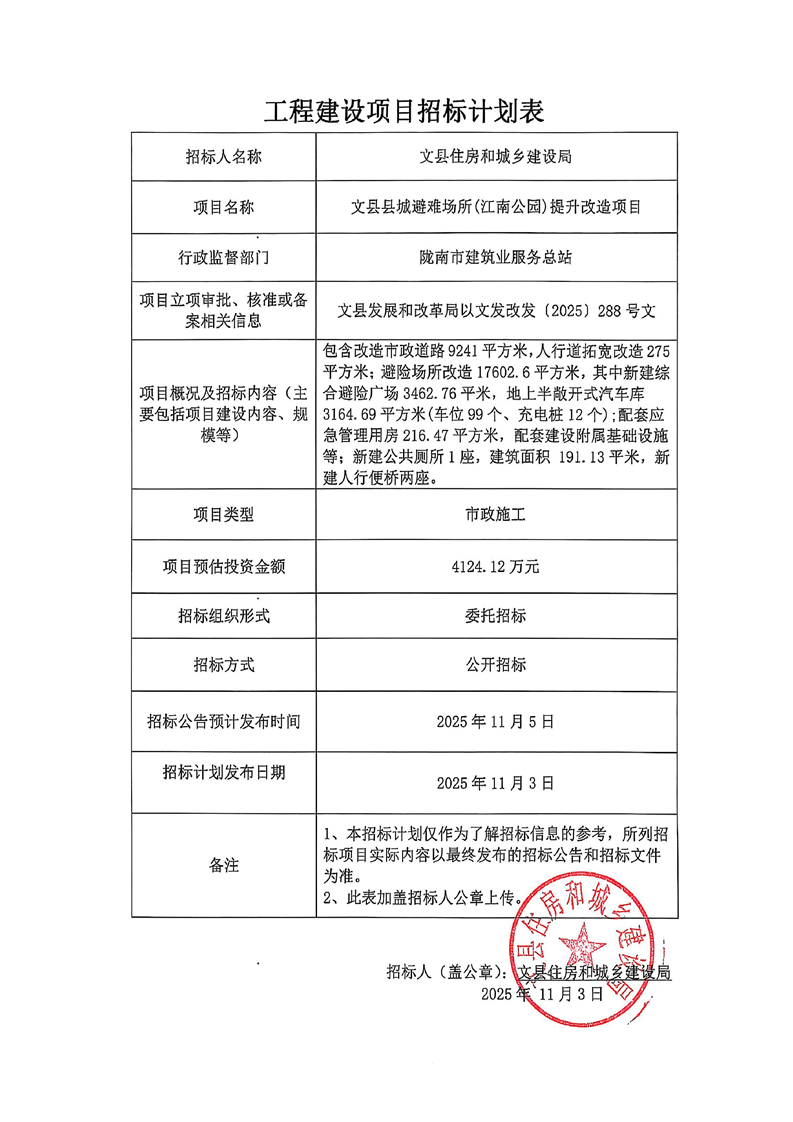 文縣縣城避難場所(江南公園)提升改造項目