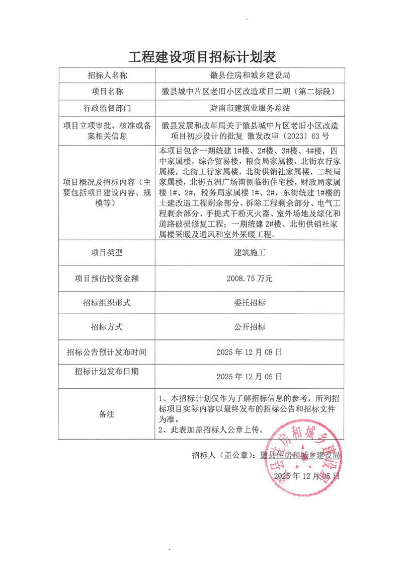 附件:工程建設(shè)項(xiàng)目招標(biāo)計(jì)劃表徽縣城中片區(qū)老舊小區(qū)改造項(xiàng)目二期(第二標(biāo)段).pdf
