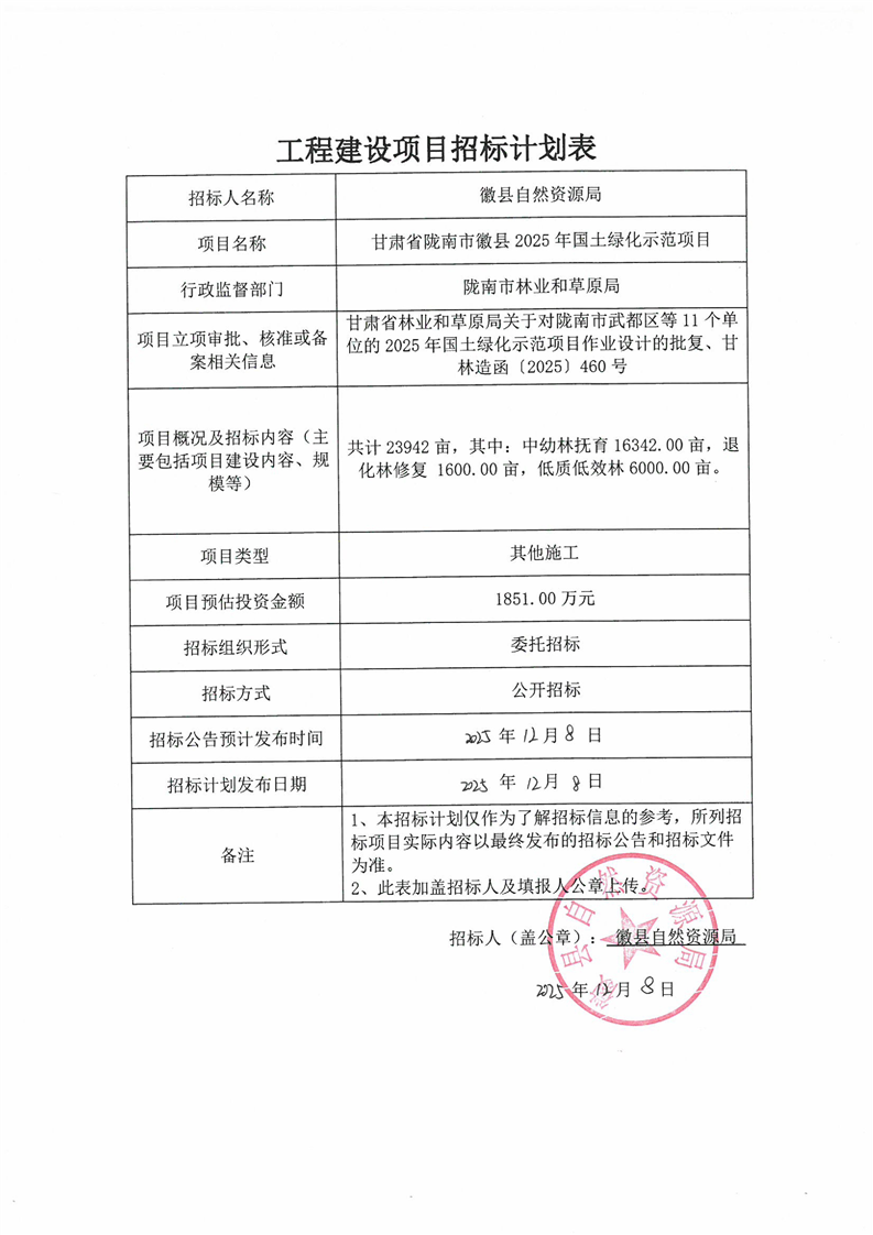 甘肅省隴南市徽縣2025年國(guó)土綠化示范項(xiàng)目