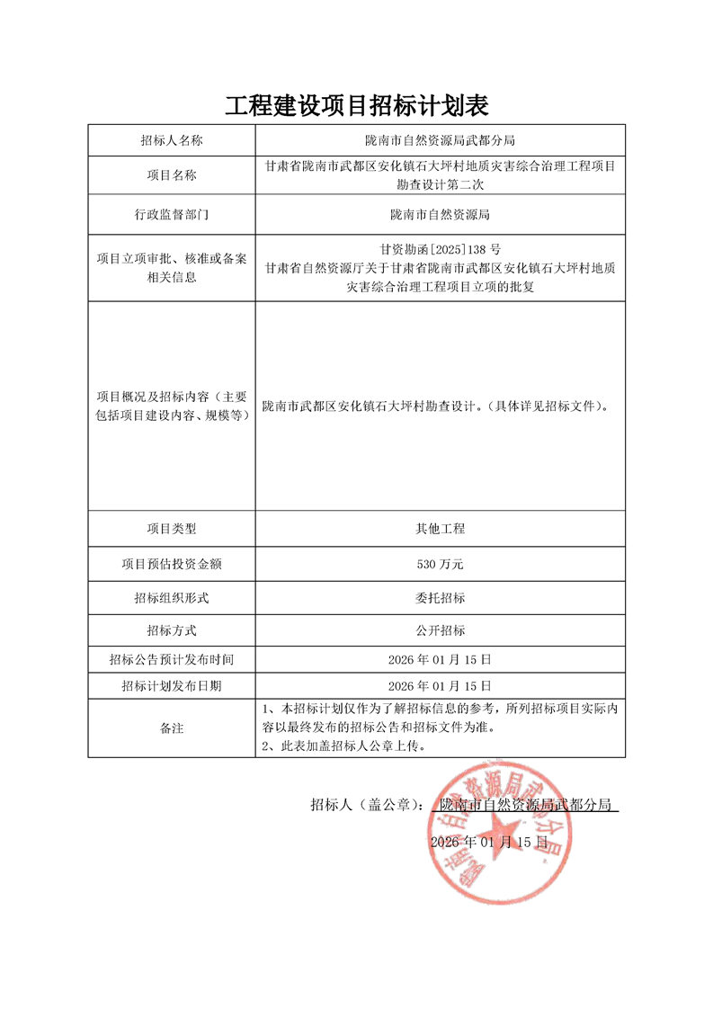 甘肅省隴南市武都區(qū)安化鎮(zhèn)石大坪村地質災害綜合治理工程項目勘查設計第二次