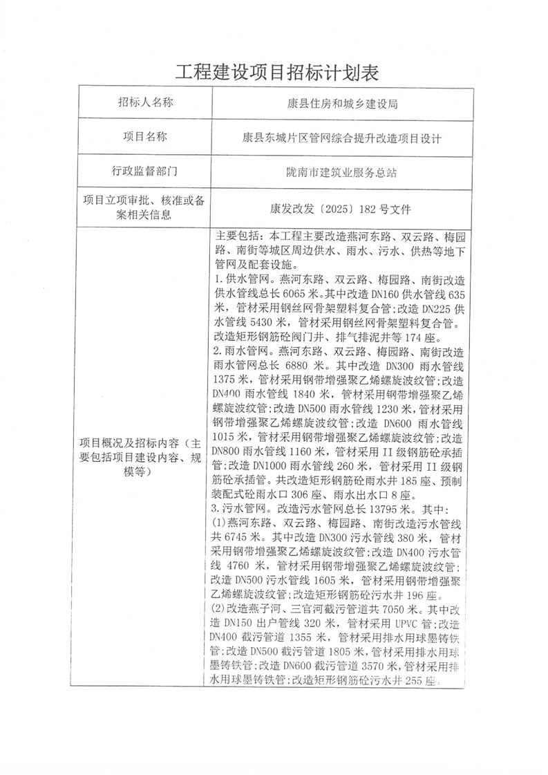 康縣東城片區(qū)管網(wǎng)綜合提升改造項(xiàng)目設(shè)計(jì)