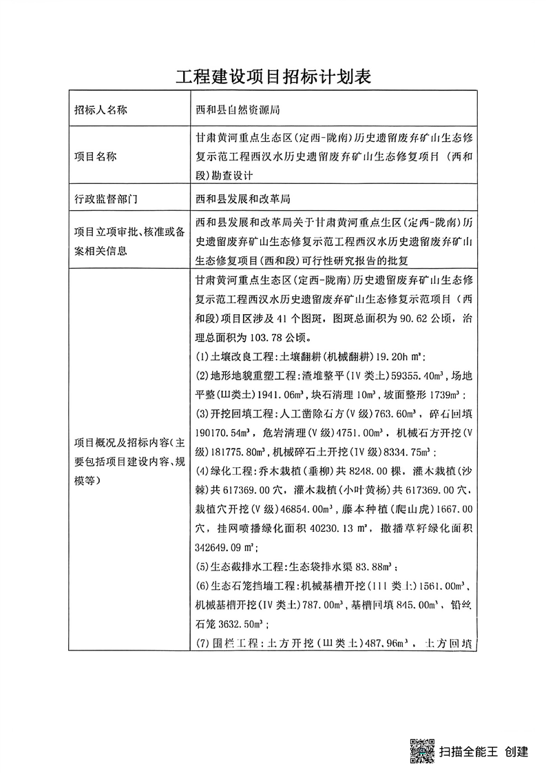 甘肅黃河重點(diǎn)生態(tài)區(qū)(定西-隴南)歷史遺留廢棄礦山生態(tài)修復(fù)示范工程西漢水歷史遺留廢棄礦山生態(tài)修復(fù)項(xiàng)目 (西和段)勘查設(shè)計(jì)