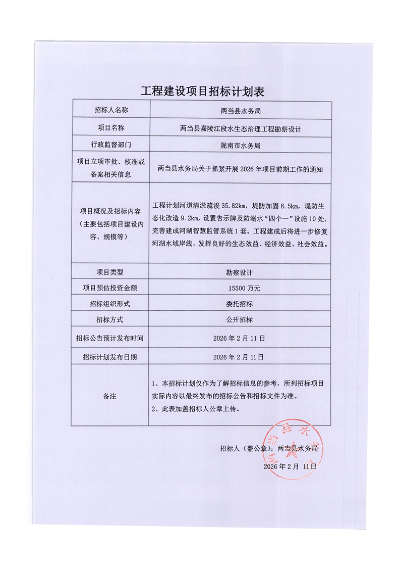 兩當縣嘉陵江段水生態(tài)治理工程勘察設(shè)計