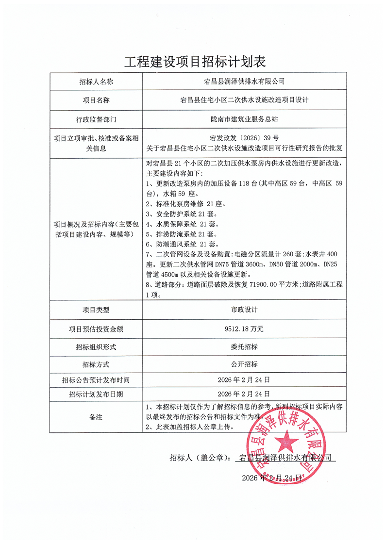 宕昌縣住宅小區(qū)二次供水設(shè)施改造項(xiàng)目設(shè)計(jì)