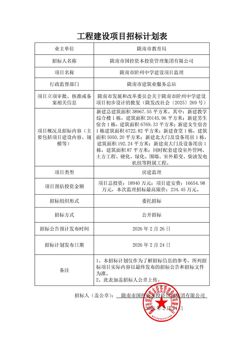 監(jiān)理招標(biāo)計劃—隴南市階州中學(xué)建設(shè)項目.pdf