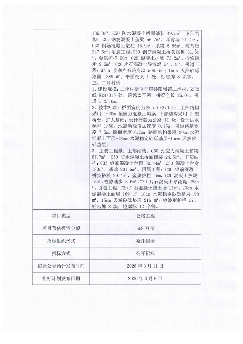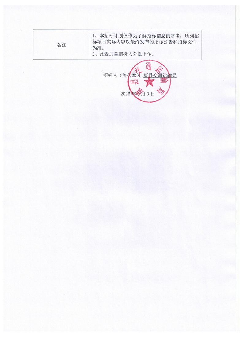 附件:招標(biāo)計(jì)劃表--康縣2026年普通省道S329線河口橋等3座危橋改造工程(1).pdf