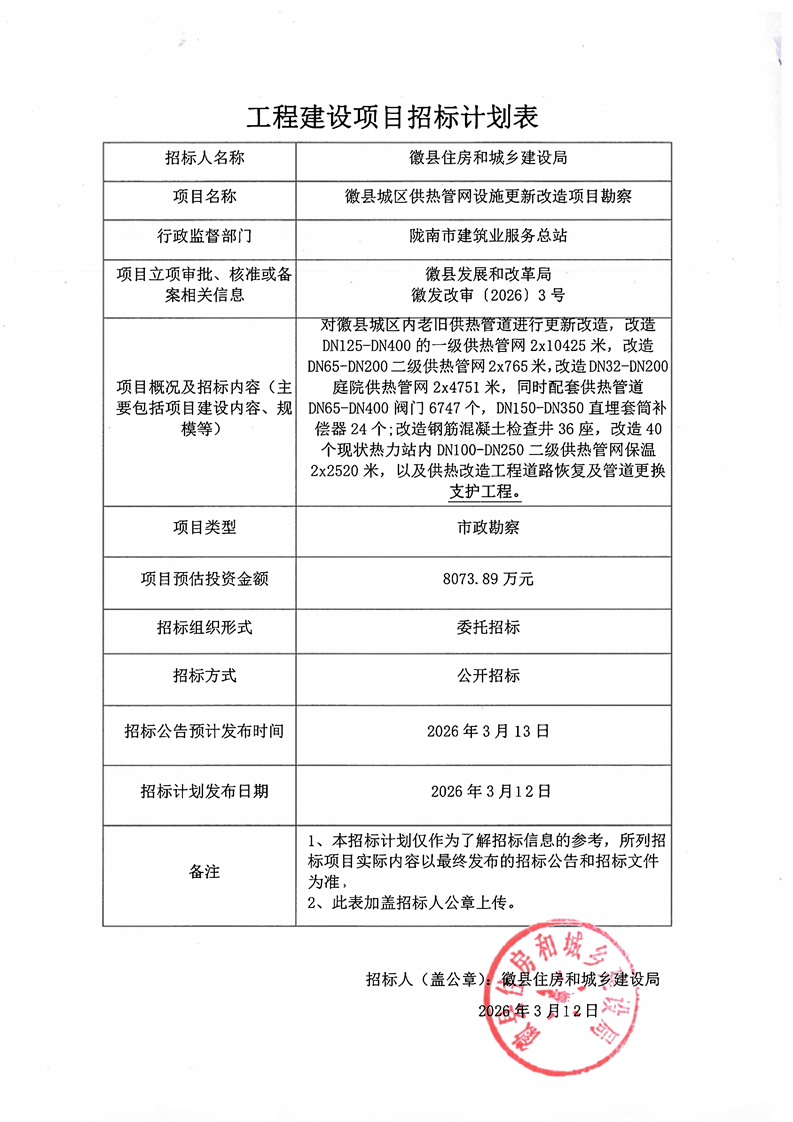 徽縣城區(qū)供熱管網(wǎng)設(shè)施更新改造項(xiàng)目勘察