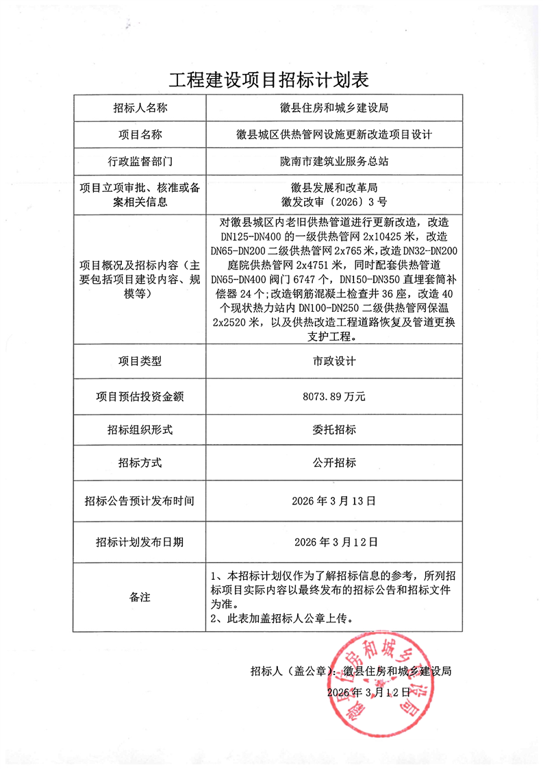 徽縣城區(qū)供熱管網(wǎng)設(shè)施更新改造項(xiàng)目設(shè)計(jì)