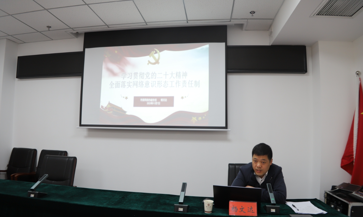 11月7日,楊文達(dá)同志以“學(xué)習(xí)貫徹黨的二十大精神,全面落實(shí)網(wǎng)絡(luò)意識形態(tài)工作責(zé)任制”為題作了專題培訓(xùn)